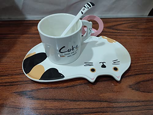 Generic - مج شاي بورسلين بالطبق لوضع البسكويت و المعلقه من مول الرحمه، أبيض