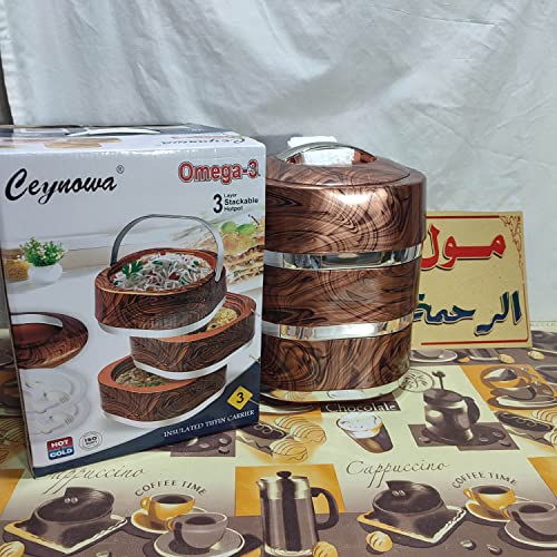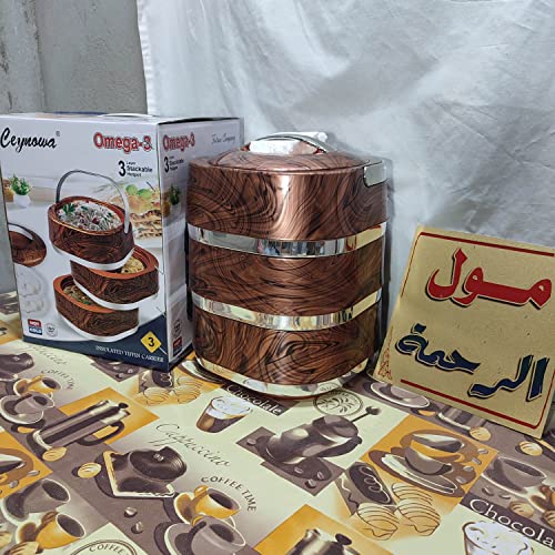 Generic - حافظ طعام عمود استنلس استيل من الداخل 3 دور لون خشبي يباع مول الرحمه