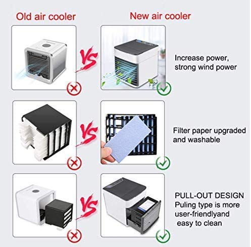 - بأسعار معقولة وقابلة للحمل - حجم صغير 5.8 × 6.7 × 6.4 انش للاستخدام المحمول. تصميم مع خزان مياه مدمج، مريح للحمل إلى أي مكان، حتى في الخارج عندما تذهب عائلتك لقضاء عطلة. المنتج مجهز بواجهة شاحن USB 5 فولت 2 امبير، طالما أن هناك واجهة USB، سيتم توفير منتجنا للعمل. يمكنك استخدام هذه المروحة أينما كنت. بديل فعال لوحدة تكييف الهواء بالإضافة إلى بديل فعال للمروحة، وبأسعار معقولة وموفرة للطاقة.