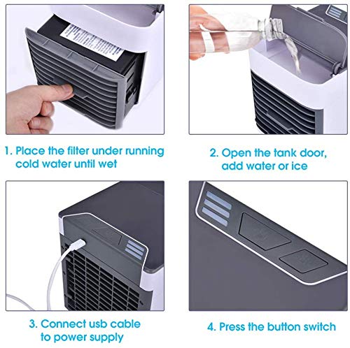 - مبرد هواء متعدد الوظائف - تم تصميم هذا المبرد الشخصي مع التبريد والترطيب والتنقية مما يسمح لك بإنشاء منطقة راحة شخصية. مزود بـ 3 سرعات رياح (عالية، متوسطة، منخفضة) ومصباح ليد ليلي مدمج لاختيارك. سهل التشغيل، يمكنك إضافة بعض الثلج مع الماء إلى خزان المياه لرذاذ الهواء البارد.