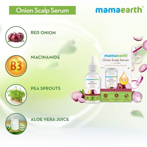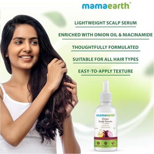 - ماما ايرث سيروم فروة الرأس بالبصل مع النياسيناميد | تركيبة مرطبة لتعزيز نمو الشعر وكثافته | محلول للتحكم في تساقط الشعر والتقصف | 1.69 اونصة سائلة (50 مل)