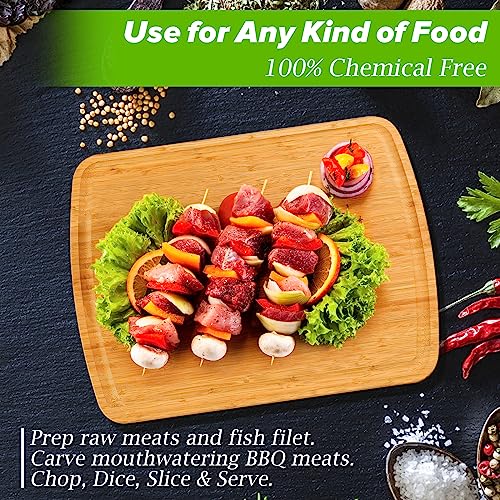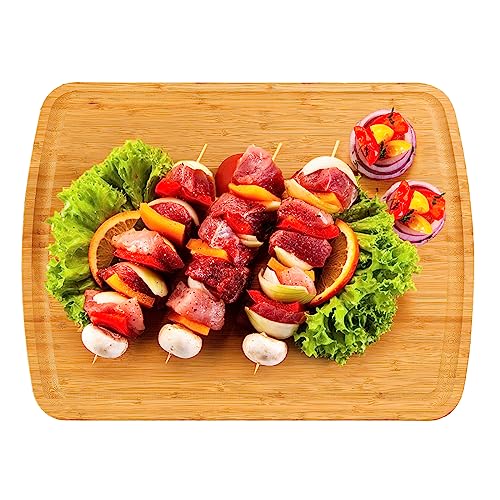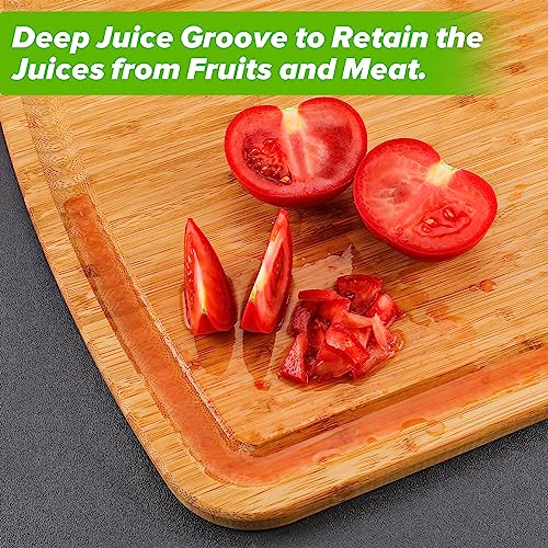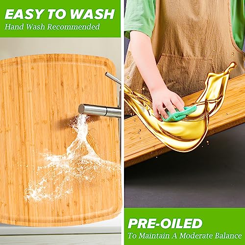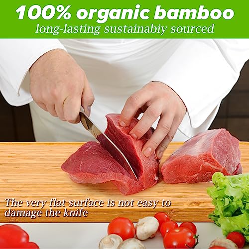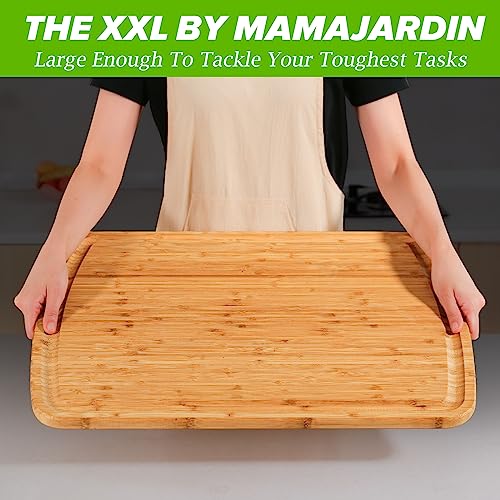 Mamajardin - الواح تقطيع كبيرة جدًا من الخيزران للمطبخ - لوح تقطيع خشبي مقاس 24 × 18 انش مع اخدود عصير ومقابض، لوح تقطيع خشبي كبير للحوم والديك الرومي والشواء والجبن الكبير