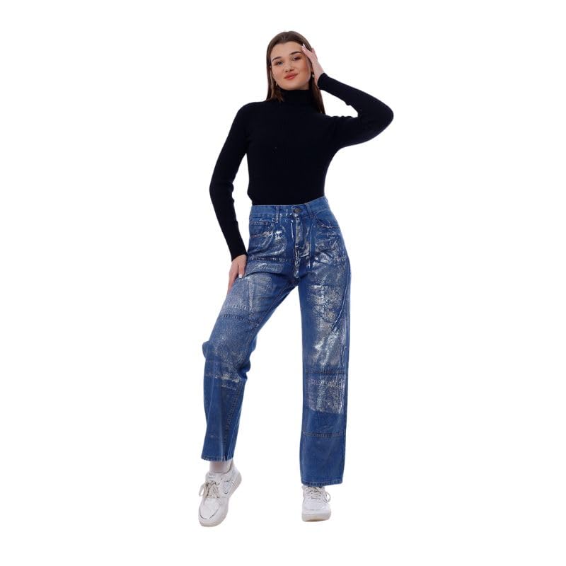 Mamilly Jeans - MAMILLY JEANS للنساء بنطلون جينز بخياطة مستقيمة