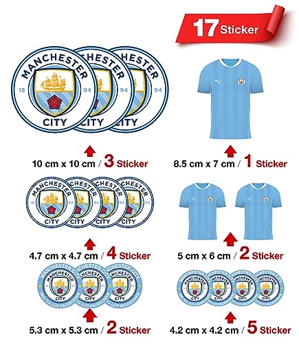 Generic - ملصق نسخه مقلده متوافق مع شعار نادي مانشستر لكرة القدم، 17 ملصقًا، للسيارات وأجهزة الكمبيوتر المحمولة والهواتف المحمولة وبلاي ستيشن والدراجات النارية والأمتعة وألواح التزلج والجدران