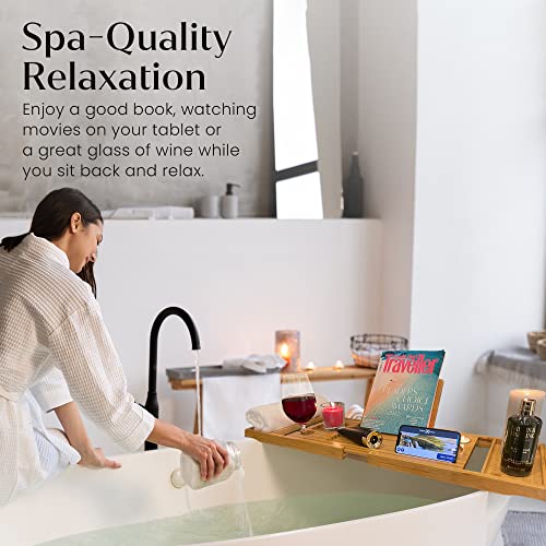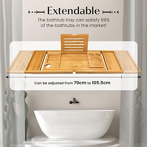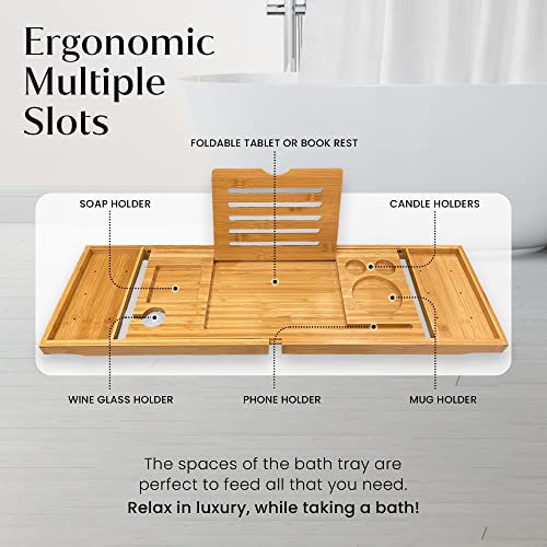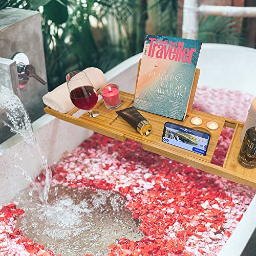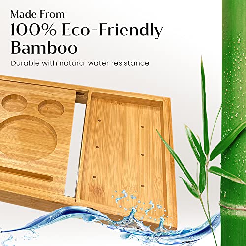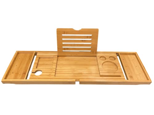 Manchester Property Services - صينية حمام/ حامل حوض استحمام من خشب الخيزران الطبيعي قابل للتمدد بحوامل مدمجة للموبايل والتابلت والكتب والشموع والكؤوس من ام بي اس مانشستر بروبرتي سيرفيسز تصميم قابل للتعديل ليناسب معظم الحمامات.