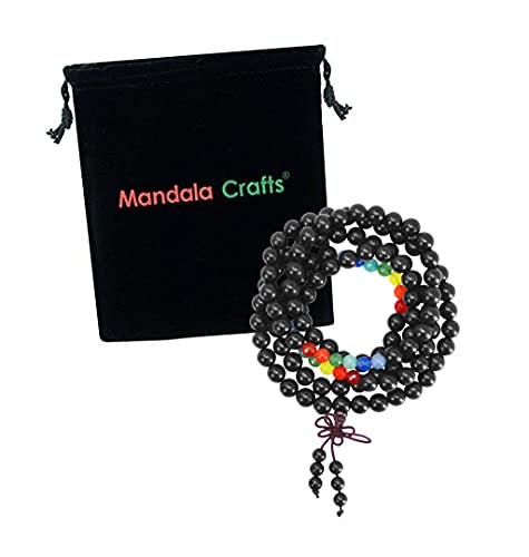 Mandala Crafts - قلادة من خرز الخشب الطبيعي ماندالا كرافتس مكونة 108 قطعة المالا الياباني سوار للرجال والنساء بدون أحجار كريمة
