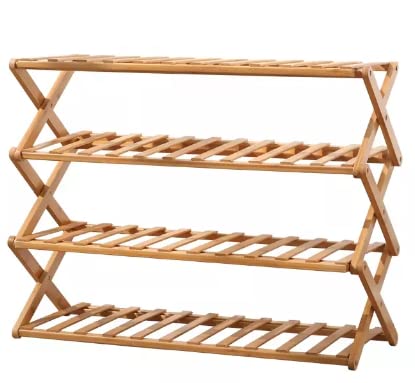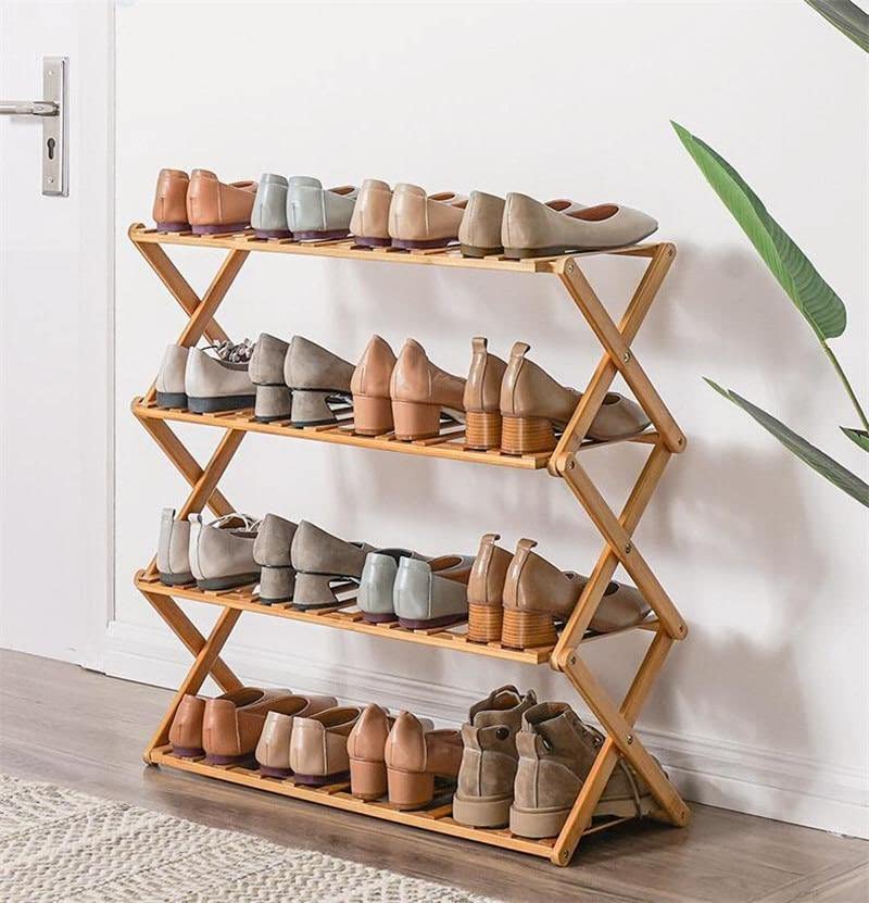Mandorra - رف أحذية من الخيزران مكون من 4 طبقات موفر للمساحة قائم بذاته بدون تجميع من ماندورا، منظم تخزين قابل للطي للخزانة والمدخل والحمام وغرفة المعيشة وغرفة النوم والبلكونة (ناتشورال)، طبيعي