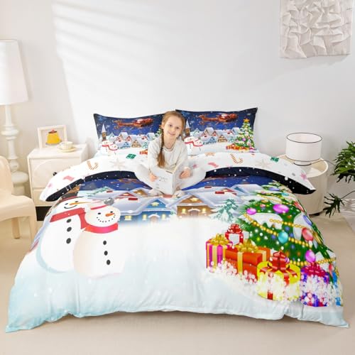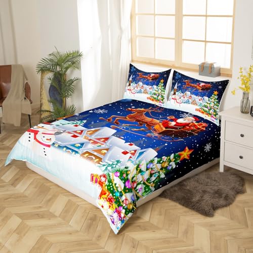 Manfei - مانفي طقم غطاء لحاف للكريسماس مقاس مزدوج بطبعة شجرة الكريسماس سانتا كلوز مع حيوان الرنة قطعتين للاطفال والبنات سرير بنمط السنة الجديدة وسادة واحد مطبوع بصور حيوانات بوليستر