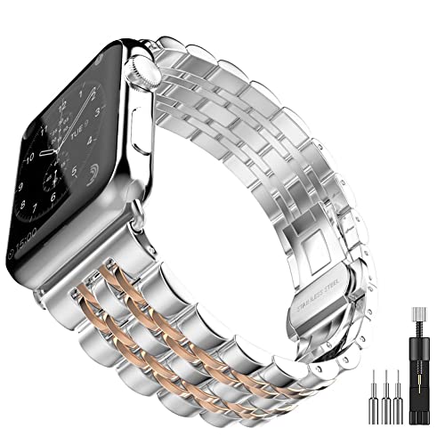 Mangoton - سوار ساعة معدني مانجوتون مع غطاء للهيكل متوافق مع ساعة آبل 38/40/41 ملم سلسلة اي ووتش 1/2/3/4/5/6/7/SE، فضي ذهبي وردي
