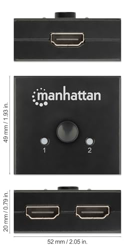 Manhattan - محول HDMI 4K ثنائي الاتجاه 207850 بمنفذين لا يتطلب طاقة - أسود من مانهاتن