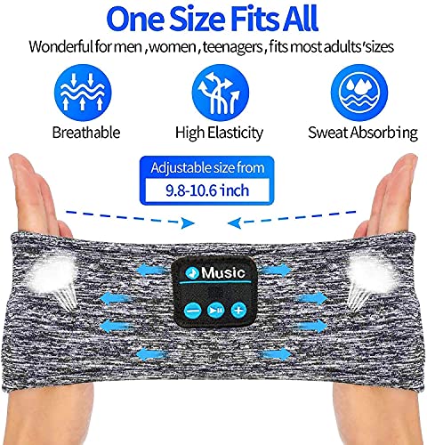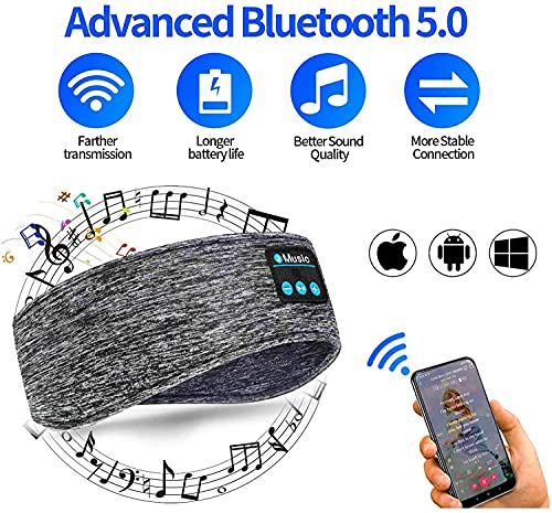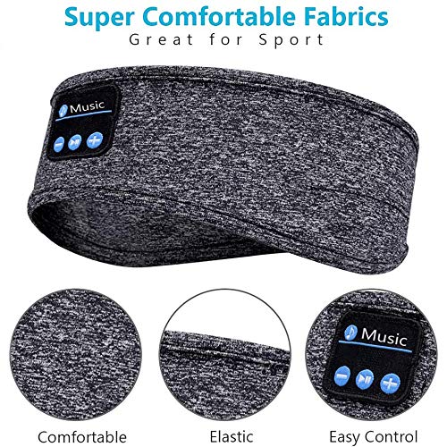 MANHNA - طوق رأس بلوتوث للموسيقى ومكالمات الموسيقى من مانها، شريط رأس رياضي للجري واليوغا والموسيقى وقناع العين للنوم (رمادي)