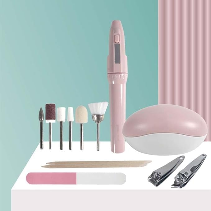 Generic - مجموعة العناية بالأظافر والقدمين الكهربائية للنساء، طقم أدوات احترافي يتضمن قلم تلميع الأظافر، وقصافة أظافر من الفولاذ المقاوم للصدأ، ومبرد قدمين، بتصميم محمول مناسب للاستخدام المنزلي والسفر