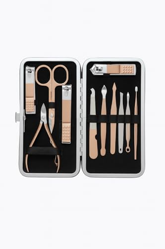 - مجموعة العناية الكاملة 12 في 1 - تتضمن قصافة الأظافر ومقص وملاقط وأدوات دقيقة أخرى للعناية باليدين والقدمين والوجه - كل ما تحتاجه في حافظة واحدة أنيقة.