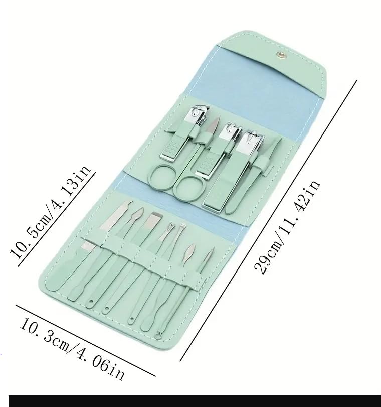 Generic - أدوات مانيكير من 12 قطعة من قصافة الأظافر وأدوات تجميل محمولة من الفولاذ المقاوم للصدأ للعناية الشخصية، أدوات احترافية صغيرة للعناية بالأظافر - لون أخضر