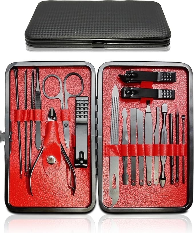 Nutrascience - مجموعة مانيكير وباديكير، مجموعة باديكير احترافية للرجال والنساء - ادوات دقيقة من الستانلس ستيل للحصول على اظافر وحواجب واذنين مثالية (اسود واحمر)