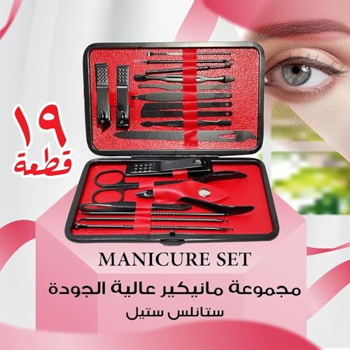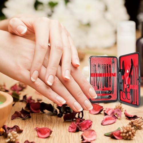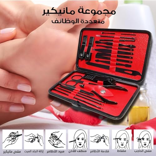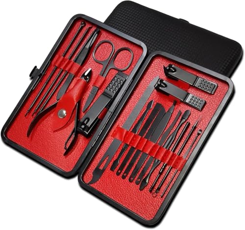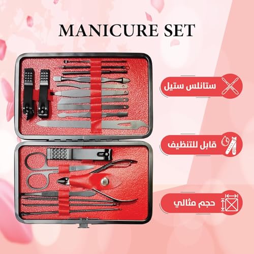 Generic - مجموعة مانيكير، مجموعة قص أظافر من الفولاذ المقاوم للصدأ وأدوات العناية بالقدمين للرجال والنساء والعناية الاحترافية بالأظافر والحواجب والأذنين مع حقيبة سفر محمولة (لون أسود وأحمر)