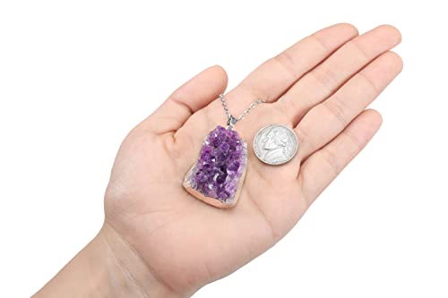 MANIFO - مانيفو قلادة من حجر الجمشت الخام والكريستال العلاجي العنقودي من الاحجار الكريمة دروزي للنساء، لون فضي