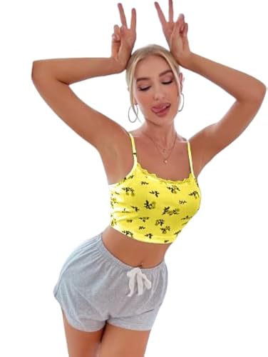 Generic - بيجامة مكونة من هوت شورت وبلوزة مزينة بنمط زهور للنساء