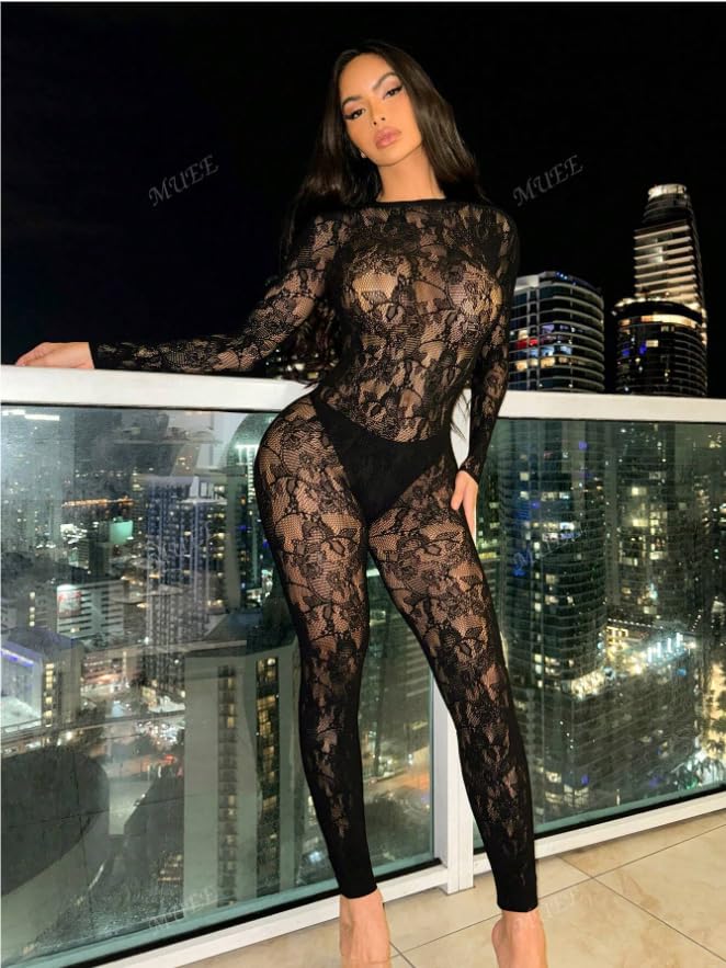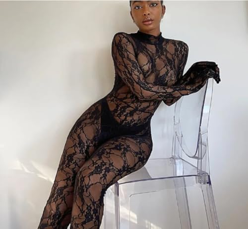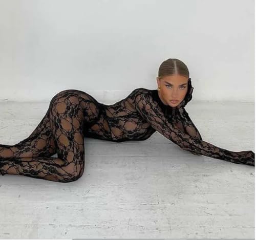 Generic - سالوبيت بكباسين من الدانتيل الشفاف للنساء من مانيكان، اسود