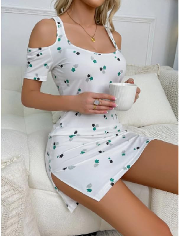 Generic - فستان نوم مكشوف الكتفين بطبعة زهور