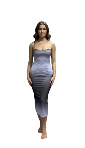 Generic - فستان ضيق للنساء، فستان بحمالات رفيعة، فستان متدرج اللون من الوردي إلى الكحلي، نمط ضيق شفاف من مانيكان