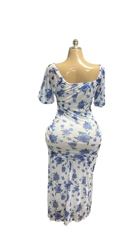 Generic - فستان ضيق بتصميم مكشكش واكمام قصيرة منفوخة ورقبة مربعة للنساء من مانيكان