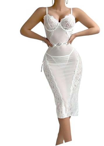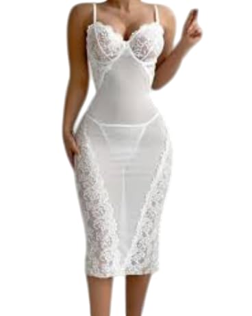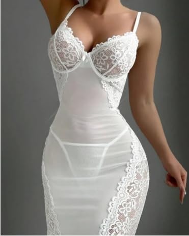 Generic - ملابس داخلية نسائية من مانيكان، فستان ضيق من الدانتيل الابيض الانيق، رقبة على شكل قلب، طول متوسط