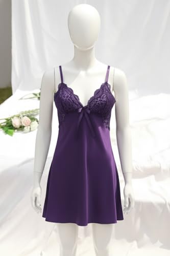 Generic - قميص نوم لانجيري للنساء من مانيكان بتصميم من قطعة واحدة مصنوع من قماش ليكرا ناعم ومرن، يتميز بنمط بيبي دول مثير مع زخرفة من الدانتيل ورقبة على شكل حرف V