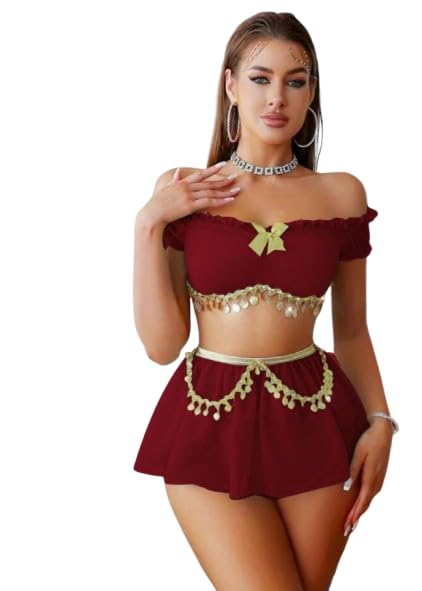 Generic - طقم بلوزة قصيرة مكشوفة الكتفين مزين بجيبه من مانيكان، لون أزرق تركواز - مقاس واحد