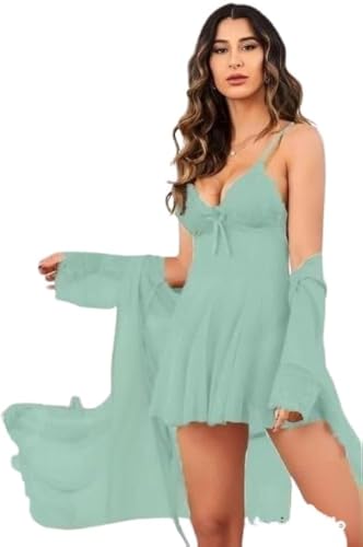 GENERIC - طقم ملابس نوم بيبي دول مزين بالدانتيل مع روب للنساء من مانيكان، طقم لانجيري من قطعتين