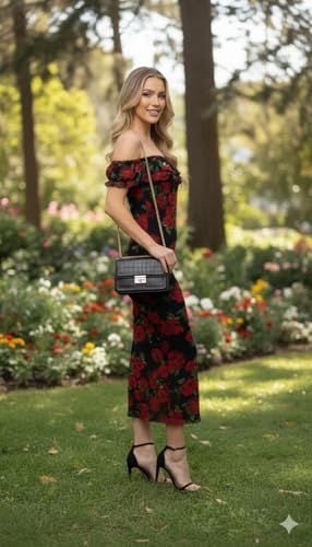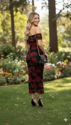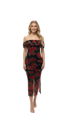 Generic - فستان ماكسي مكشوف الكتفين من مانيكان، بينك مع طباعة زهور، نمط ضيق