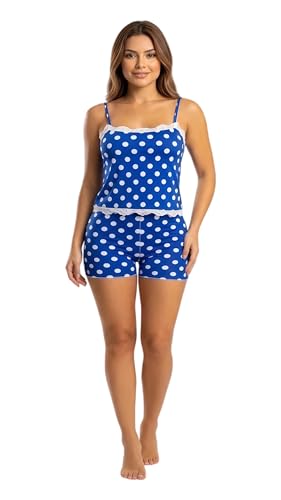 Generic - طقم بيجامة للنساء من مانيكان بتصميم منقط وشورت، ازرق وابيض، بحواف من الدانتيل، ملابس نوم
