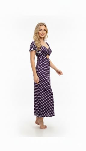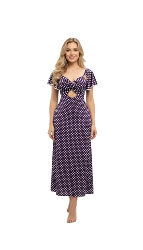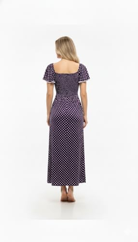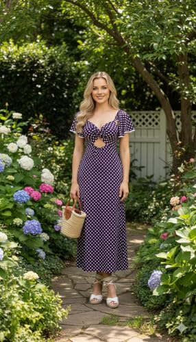 Generic - فستان نسائي متوسط الطول بتصميم كلاسيكي منقط باللونين الأسود والأبيض بتصميم فتحة أمامية وأكمام منفوخة بنمط رترو ستايل مناسب لحفلات الكوكتيل الصيفية من مانيكان
