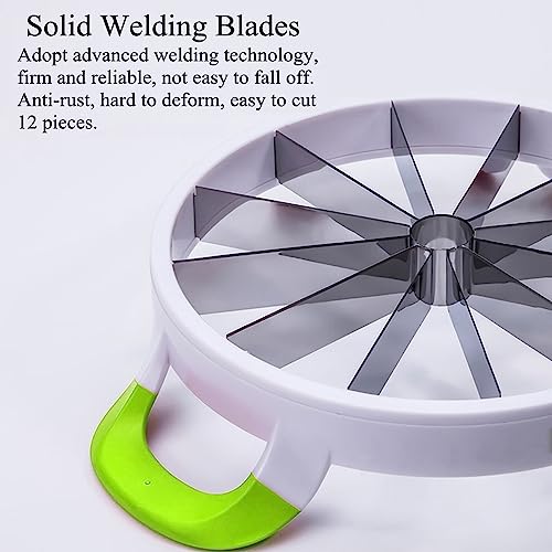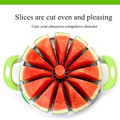 Mannice - قطاعة شرائح كبيرة للغاية دائرية ستانلس ستيل بمقبض سيليكون مريح، قطاعة بطيخ كما شاهدت في التليفزيون، لتقطيع وتقشير وتقوير وتقديم الفاكهة والبطيخ والشمام والاناناس (لون اخضر، كبيرة)