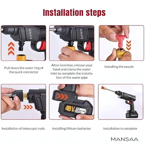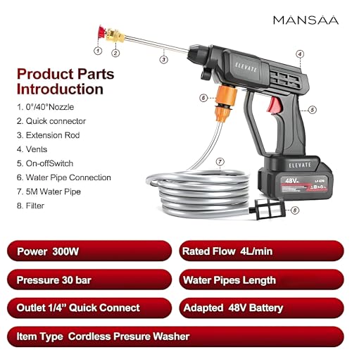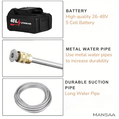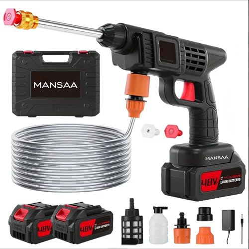- غسالة تعمل بالضغط لاسلكية مزدوجة البطارية (48 فولت، ليثيوم) مجهزة ببطاريتين ليثيوم ايون قويتين 48 فولت للاستخدام الطويل. لا حاجة إلى مقبس طاقة - غسالة مثالية لاسلكية عالية الضغط للاستخدام في الهواء الطلق والرحلات البرية والتنظيف المنزلي.