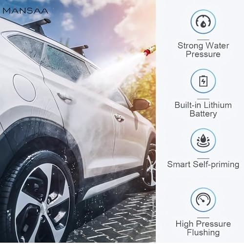 MANSAA - غسالة باور ووش برو من مانسا، محمولة في اي مكان، مسدس ضغط عالي للسيارة، مضخة غسيل السيارات، غسالة تعمل بالضغط، مسدس ماء (اسود)
