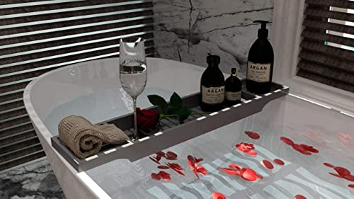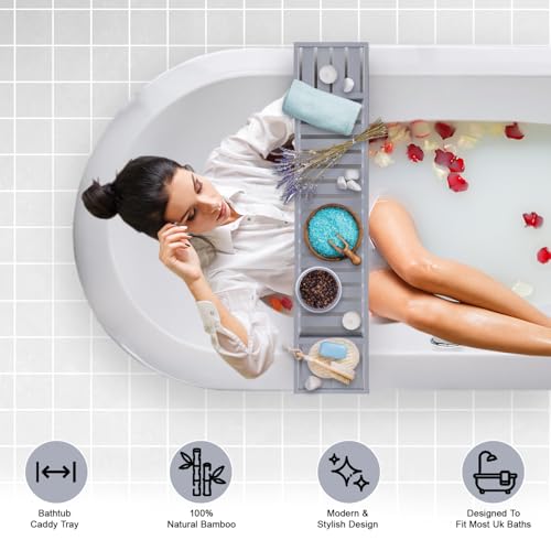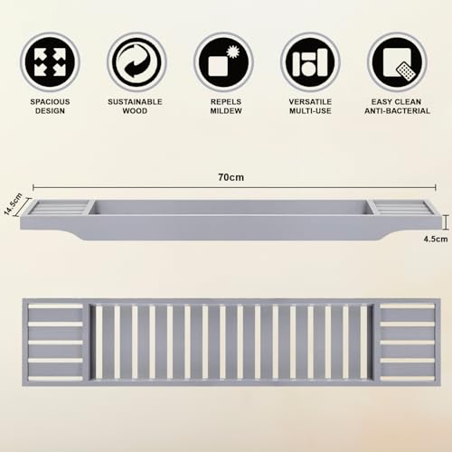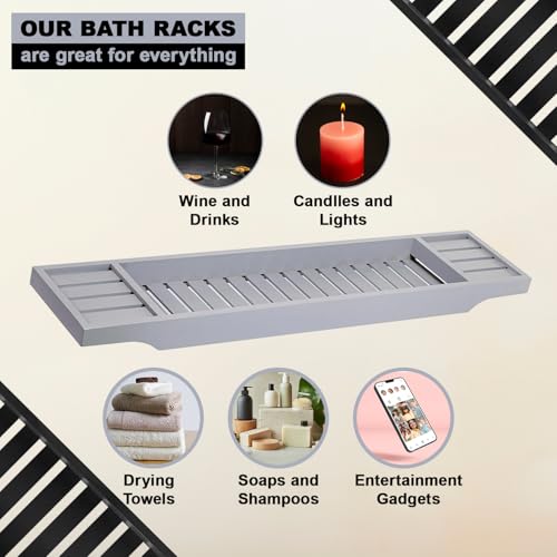 MantraRaj - حامل خشبي لمستلزمات الحمام من مانتراراج رف حمام أبيض الخيزران ورف منظم ومناسب للقراءة والتابلت وكيندل اكسسوار لون رمادي بامبو مستطيلي