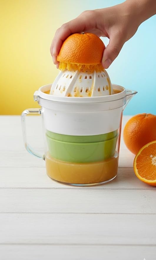 - عصارة حمضيات يدوية: تصميم عملي وسهل الاستخدام لعصر البرتقال والليمون والحمضيات المختلفة بكفاءة عالية للحصول على عصير طازج ولذيذ
