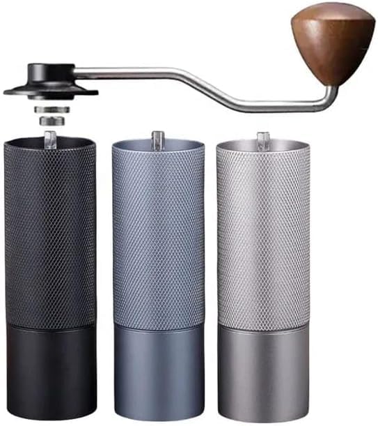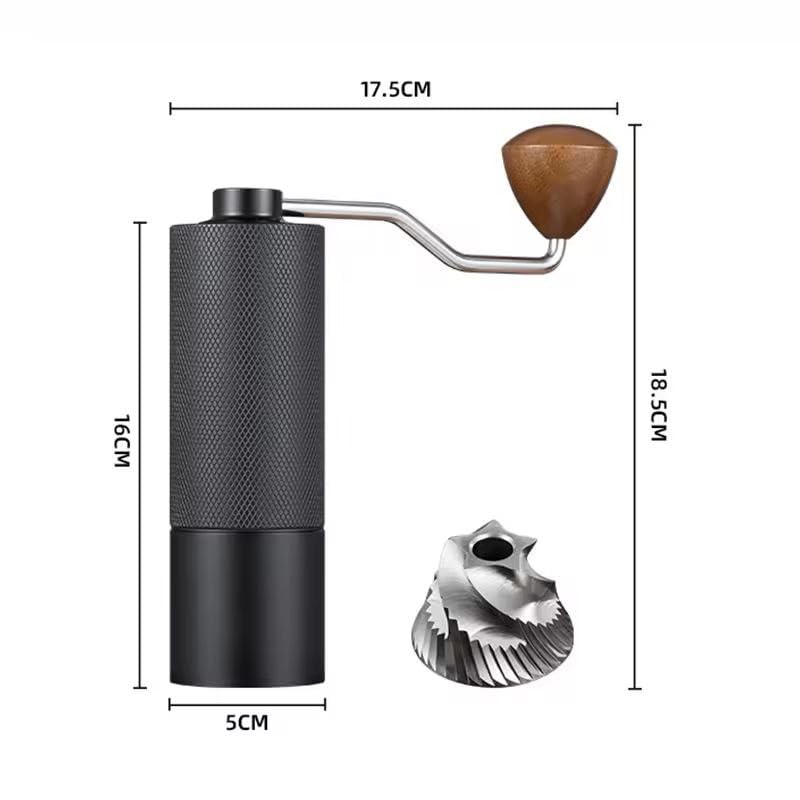 - مطحنة قهوة يدوية ترس خماسى إعداد داخلي قابل للتعديل موضع محمل مزدوج سعة 25 جرام نتوءات من الصلب تقنية يابانية اللون