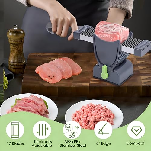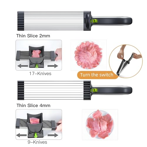 Generic - قطاعة يدوية - قطاعة يدوية احترافية 17 في 1 من الستانلس ستيل مع تحكم في السمك 2-0.15 انش، مصممة للتحضير الفعال لاطباق لحم الخنزير الخام والسلمون واللحوم الطازجة
