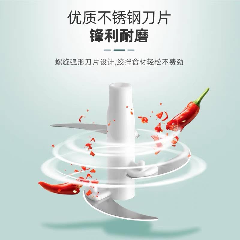 - قطاعة طعام يدوية: وعاء شفاف مع آلية سحب السلك لتقطيع وخلط الخضروات والأعشاب والمكونات الأخرى بكفاءة