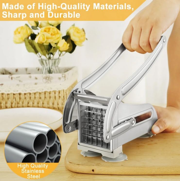 Fictory - قطاعة يدوية للبطاطس المقلية والفرينش فرايز، قطاعة بطاطس من الستانلس ستيل للخضروات والبطاطس، الة تقطيع شرائح بقدم غير قابلة للانزلاق، اداة مطبخ، اكسسوارات للاستخدام المنزلي والتجاري