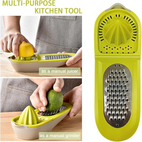 • أداة مطبخ متعددة الأغراض - يمكن استخدام أداة المطبخ كعصارة يدوية ومطحنة يدوية. استمتع بعصير الليمون الطازج وعصير الليمون وعصير الحمضيات مع عصارة الفاكهة هذه. عند استخدامها كمطحنة، يمكنك بسهولة تحويل البطيخ والفواكه والثوم إلى جزيئات صغيرة دقيقة. إنها أداة مطبخ مفيدة للغاية.