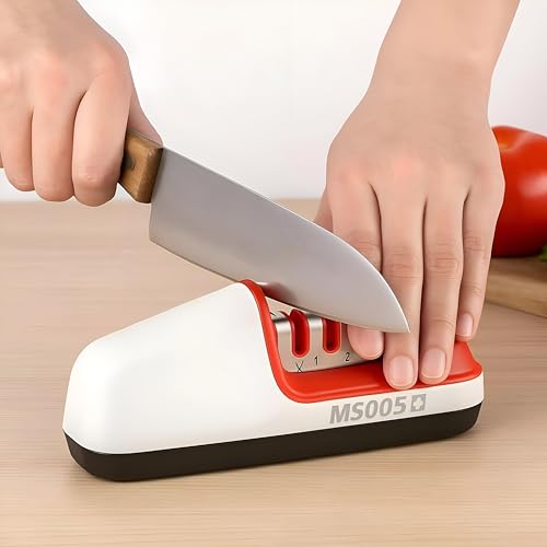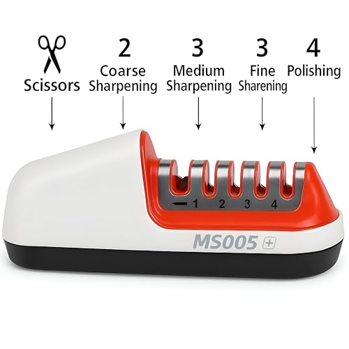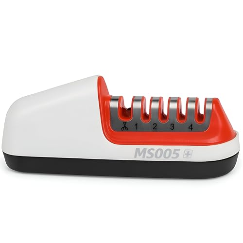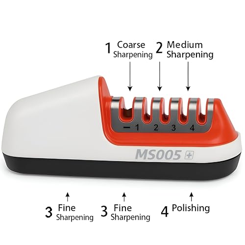 Generic - مسن سكاكين يدوي عالي الأداء بلون أبيض وبرتقالي عملي من خمس مراحل بقبضة مريحة لسهولة الاستخدام