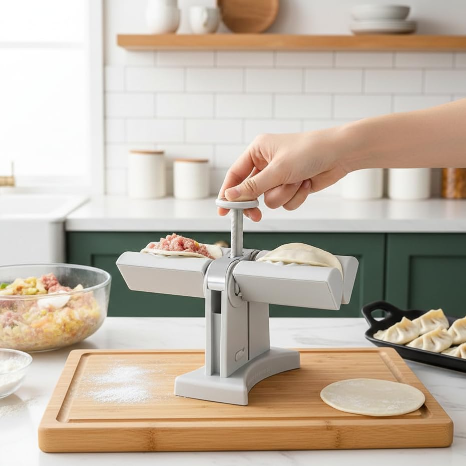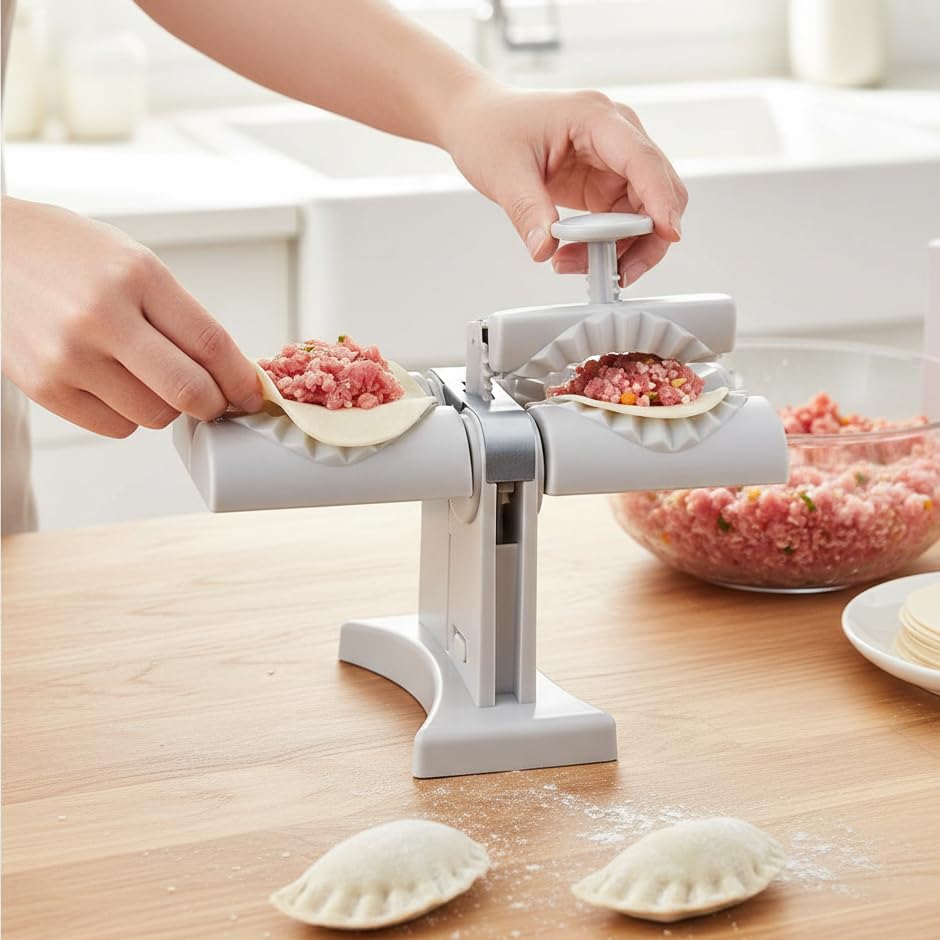 - تصميم 2 في 1: يتيح لك صنع قطعتين من المعجنات في نفس الوقت، مما يوفر الوقت والجهد في تحضير الفطائر والسمبوسة بشكل احترافي ومتساوي