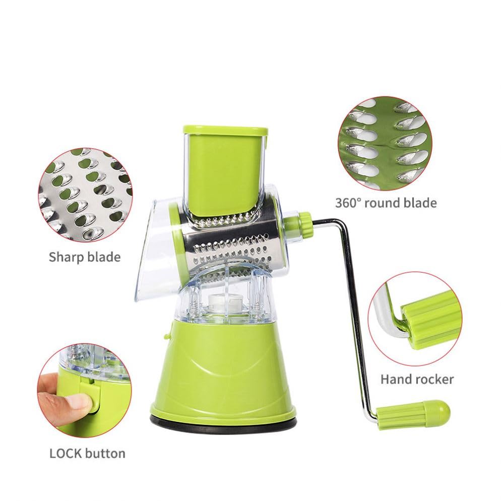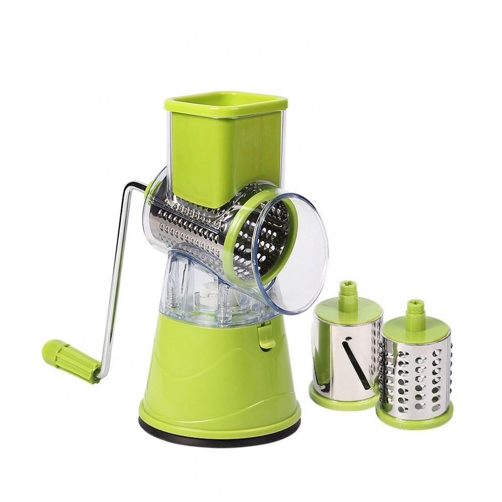 Generic - قطاعة شرائح ومبشرة يدوية دوارة مع ذراع تدوير يدوي للخضروات، 3 شفرات أسطوانية مصنوعة من فولاذ مقاوم للصدأ وتصميم مزود بقاعدة لاصقة، تقطيع شرائح وبشر سريع للجزر والخيار والبطاطس والجبن وتحضير السلطة