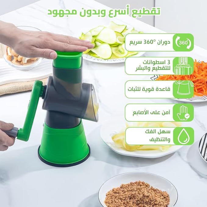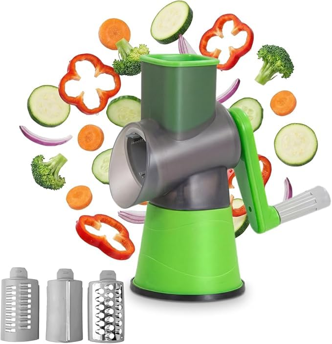 Generic - قطاعة خضروات يدوية دوارة بذراع تدوير مع قاعدة شفط غير قابلة للانزلاق للجبن والسلطة والخضروات والفواكه، قطاعة للمطبخ XE-132 (اخضر)