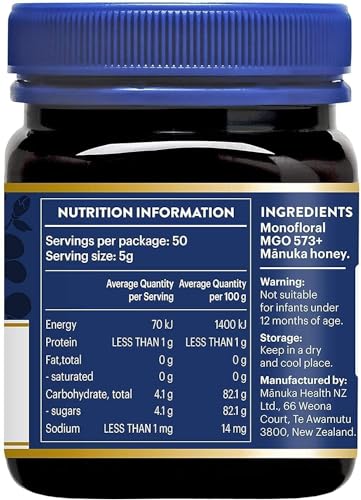 Manuka Health - عسل مانوكا صحي بتركيبة ميثيل جليوكسال 573 بدرجة نقاء UMF16 وزن 250 جم