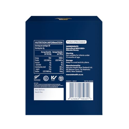 Manuka Health - عسل مانوكا 950+ معتمد بشهادة جودة خاصة بعسل المانوكا (250 جرام) عالي الفعالية من مانوكا هيلث، العناية المستهدفة، عسل مانوكا نيوزيلندا، طعام فائق القيمة، عضوي