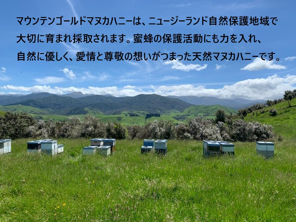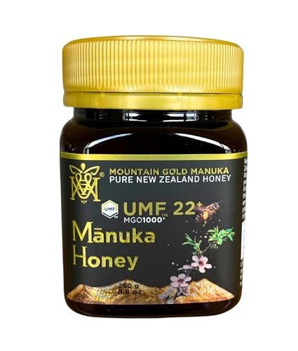 MOUNTAIN GOLD MANUKA マウンテンゴールドマヌカ - عسل مانوكا UMF22+ MGO1000+ 250 جرام، خالي من الإضافات، غير ساخن، عسل مانوكا جولد خام ماونتن جولد، صنع في نيوزيلندا، تم فحص الجودة